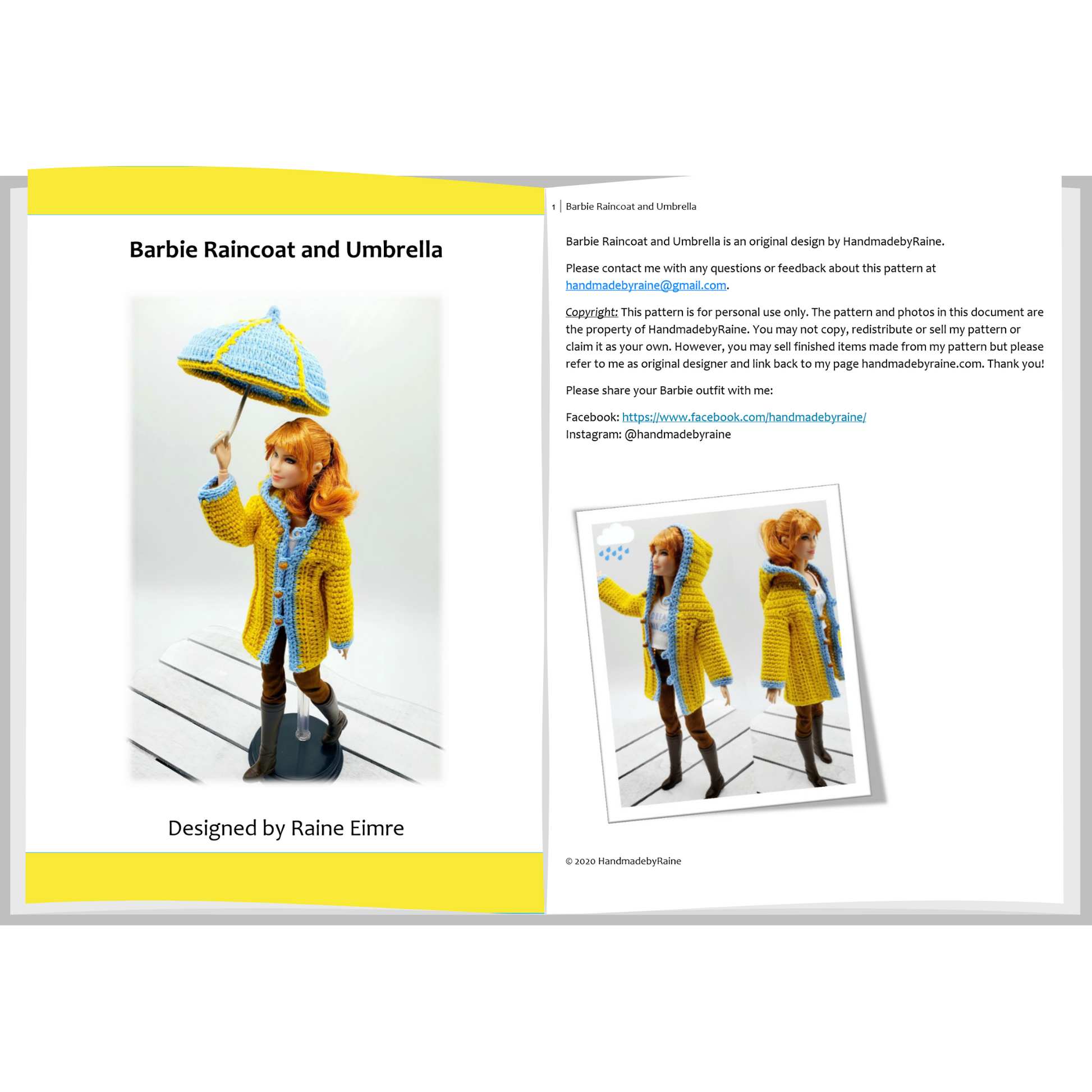 Barbie Raincoat and Umbrella PDF Crochet Pattern