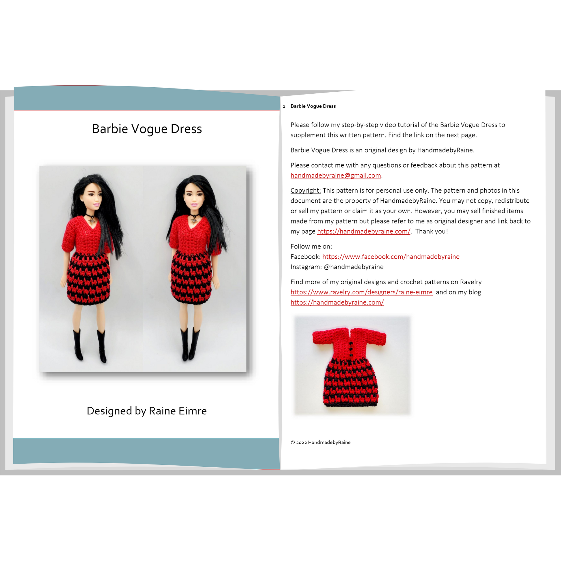 I invite you to crochet the stylish Vogue Dress for Barbie! It fits in perfectly with current season as it’s warm yet elegant to wear at all the holiday gatherings.