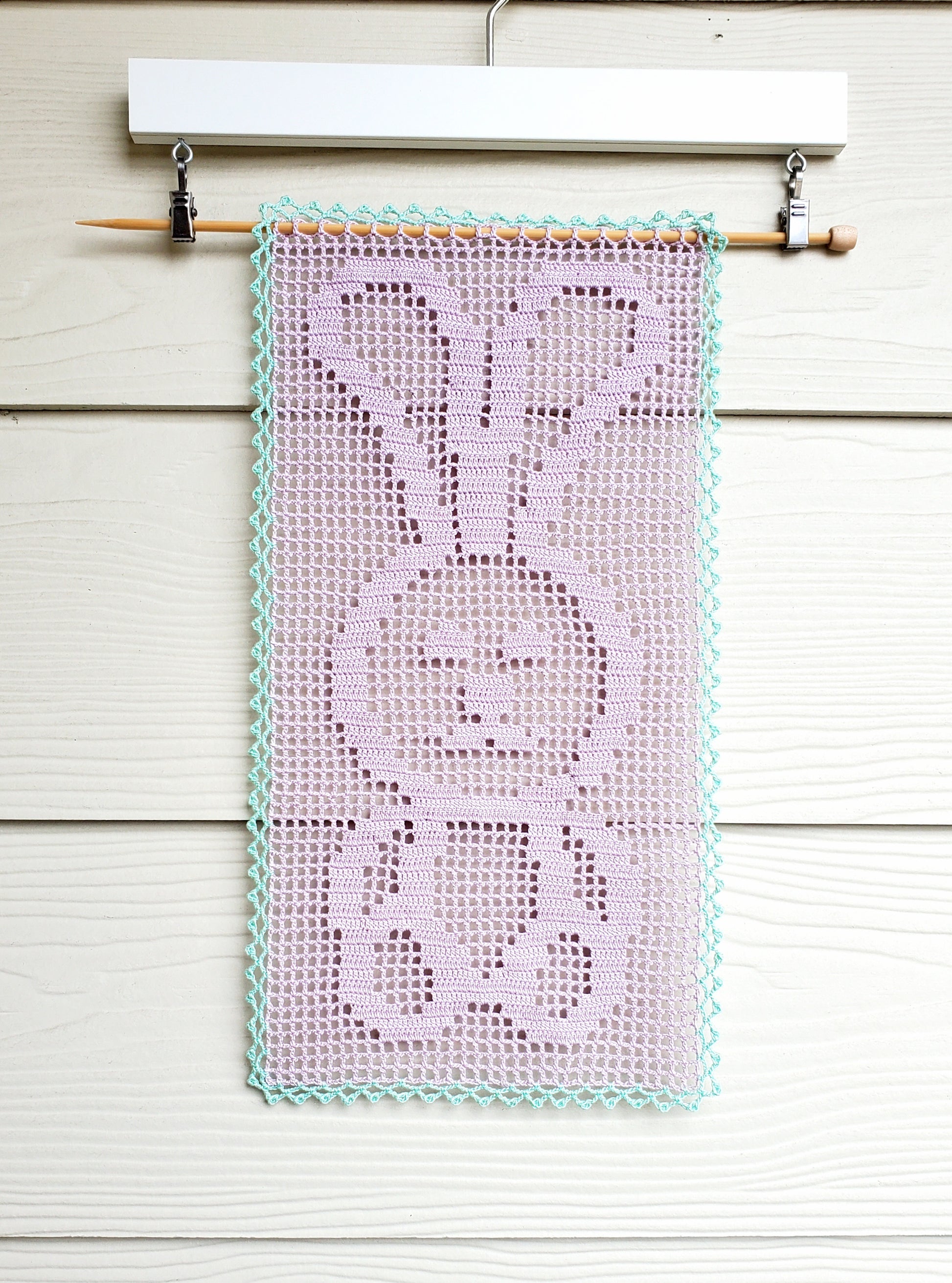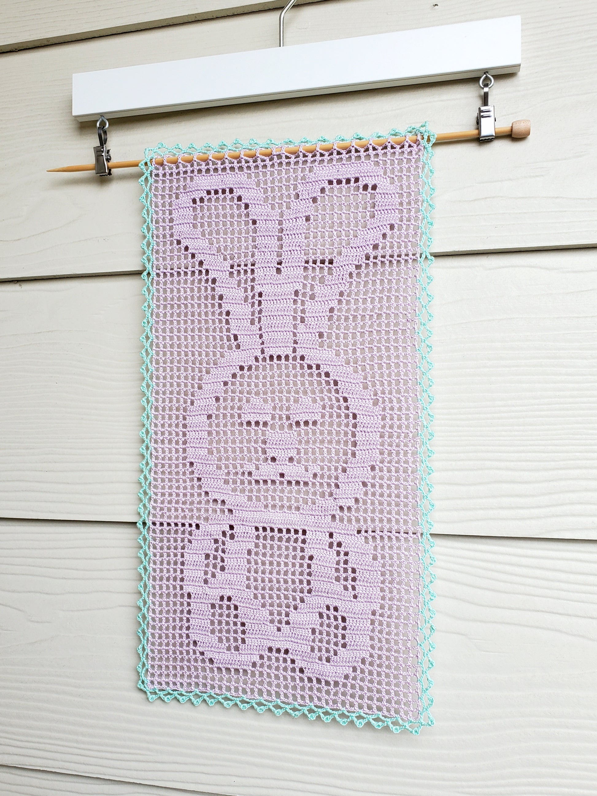 First, we crochet the bunny image with filet crochet technique and then add the two rounds of border.