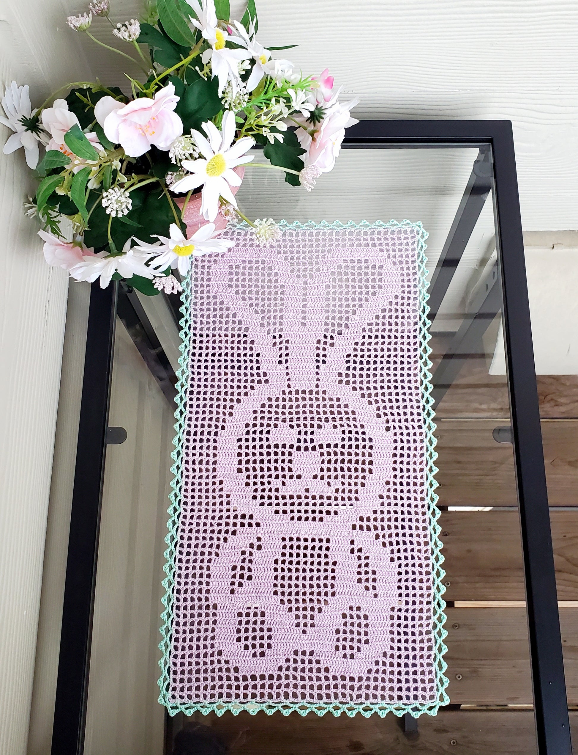 Here is the new Easter design that will help you celebrate the season, so I invite you to crochet the Bunny Table Runner with me.