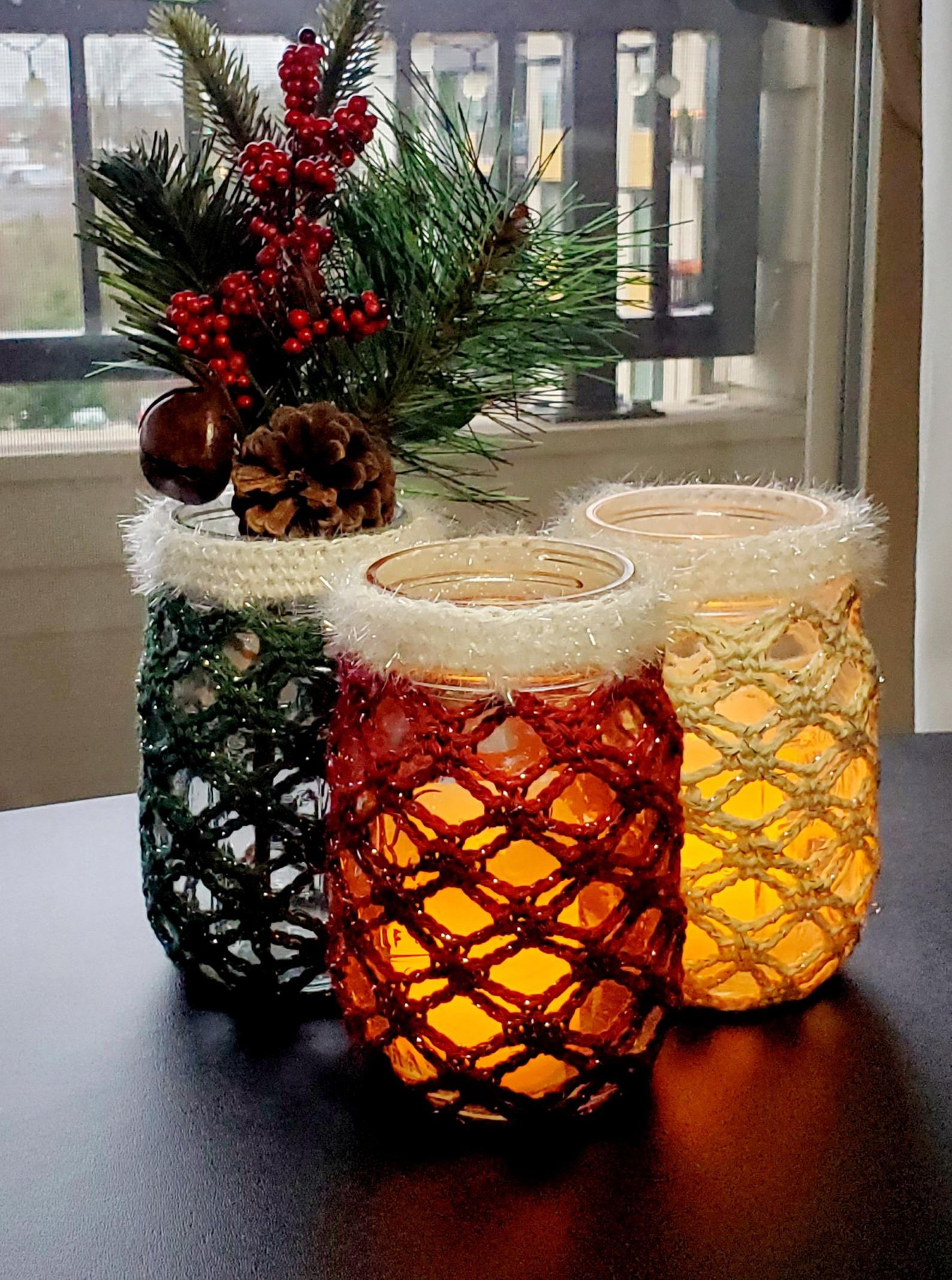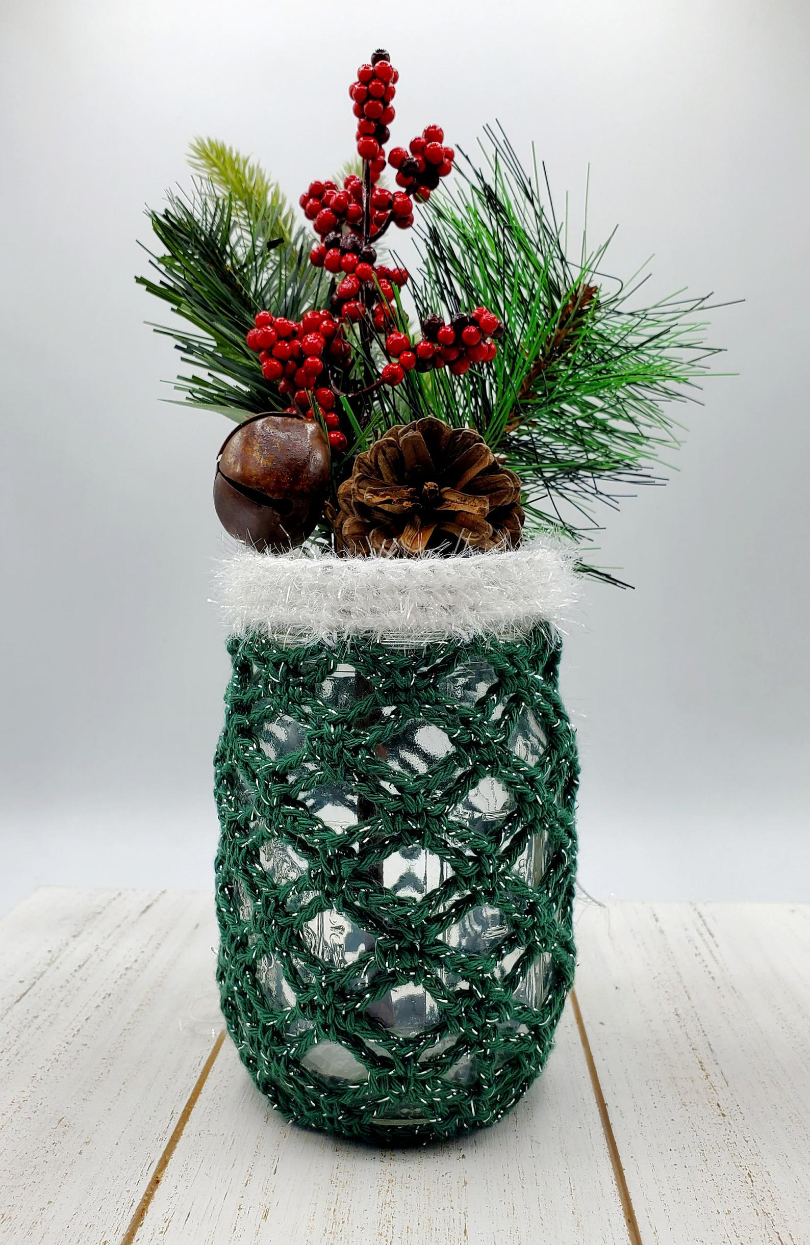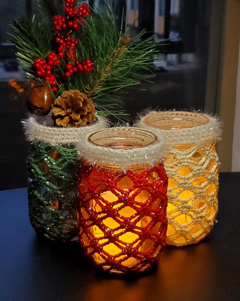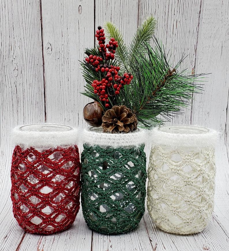 Still need a Christmas gift idea? How about crocheting this very easy and cute Christmas Jar Cozy. It is quick too – I made one in less than an hour!