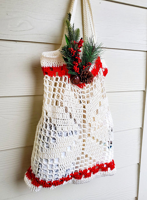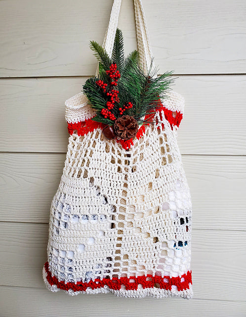 Crochet this easy Christmas shopper to help with all the last minute gift shopping.