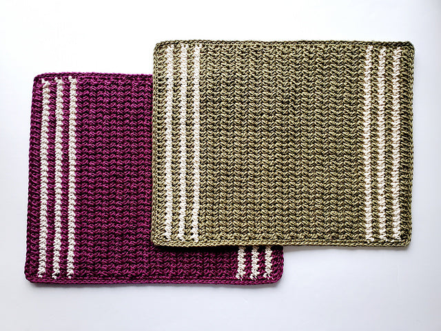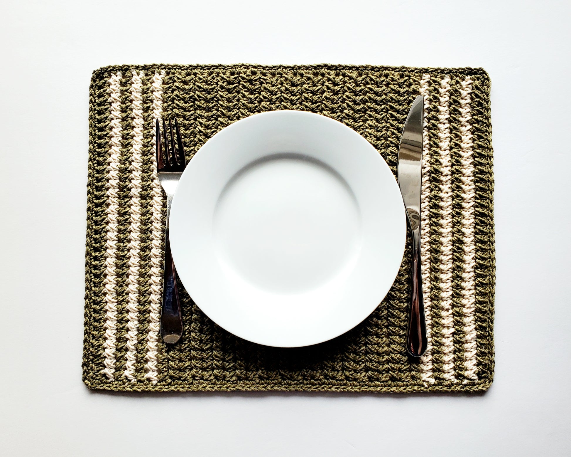 It is quick and easy, and you will learn or practice a special stitch called crossed half double crochet. In addition to giving the nice texture to the pattern, it’s also very enjoyable stitch to work with, so you’ll find yourself keep crocheting more placemats.