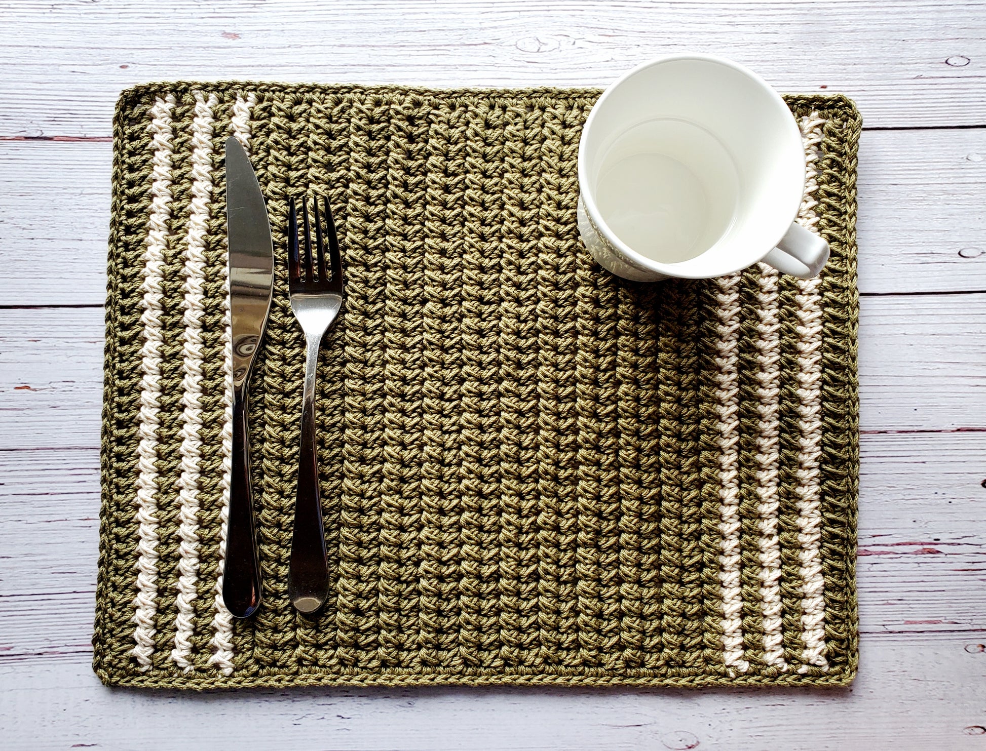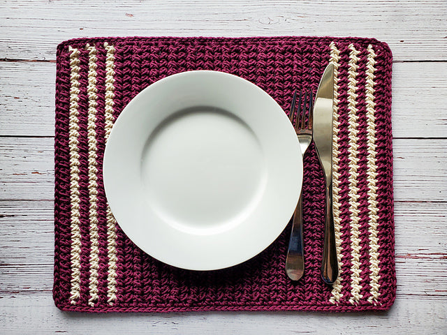 The Crossed Stitch Placemat will add the warmth of handmade table decor to all the upcoming holiday dinners.
