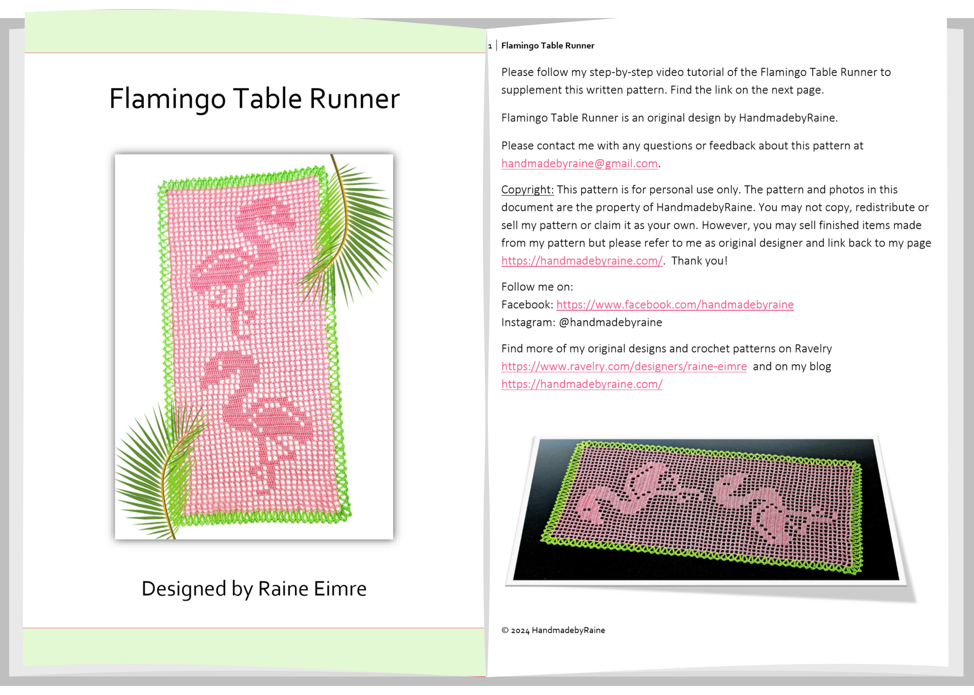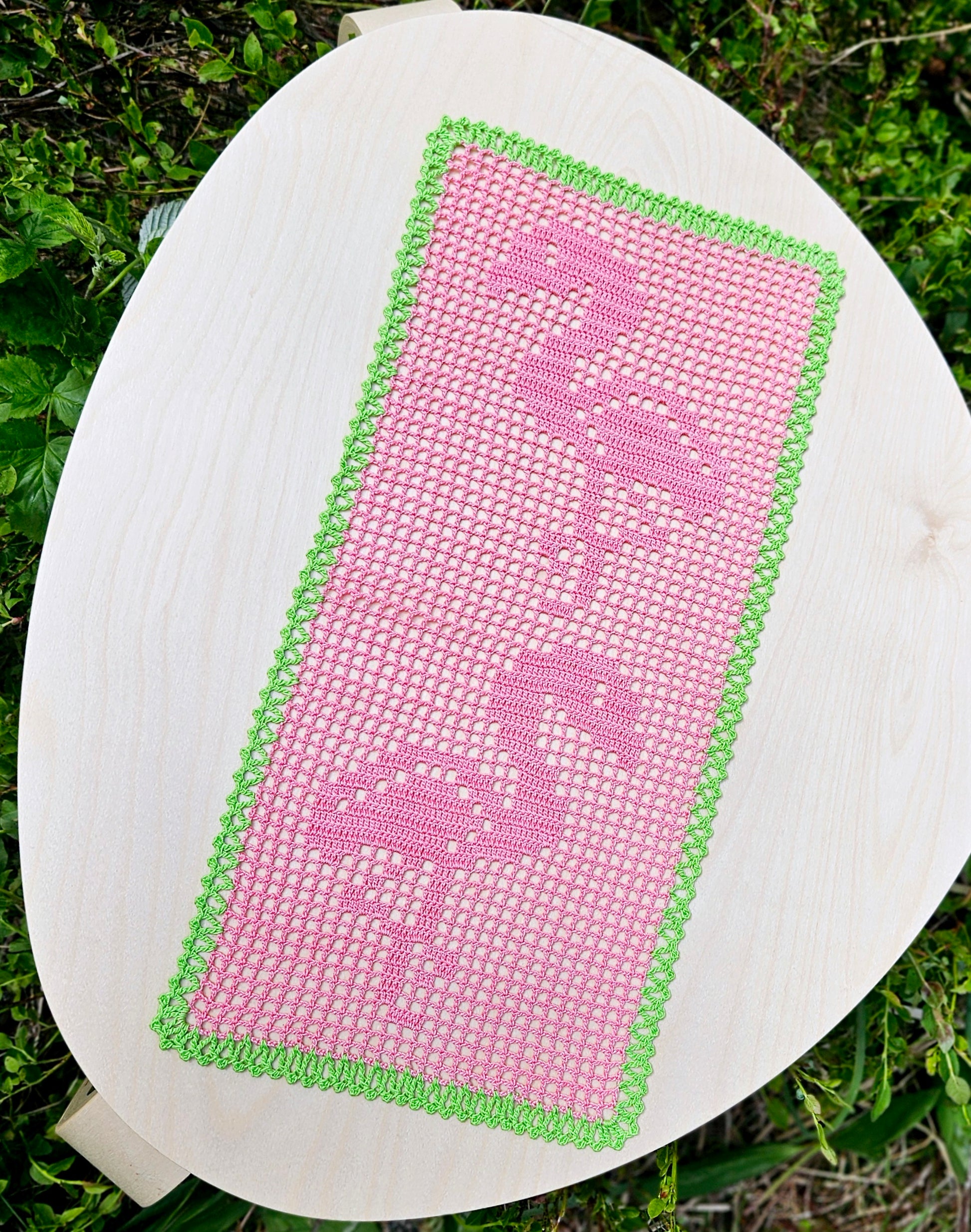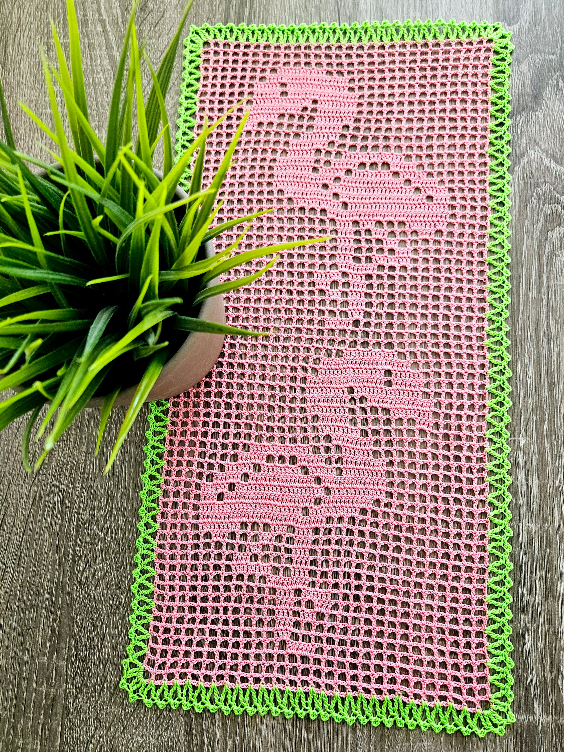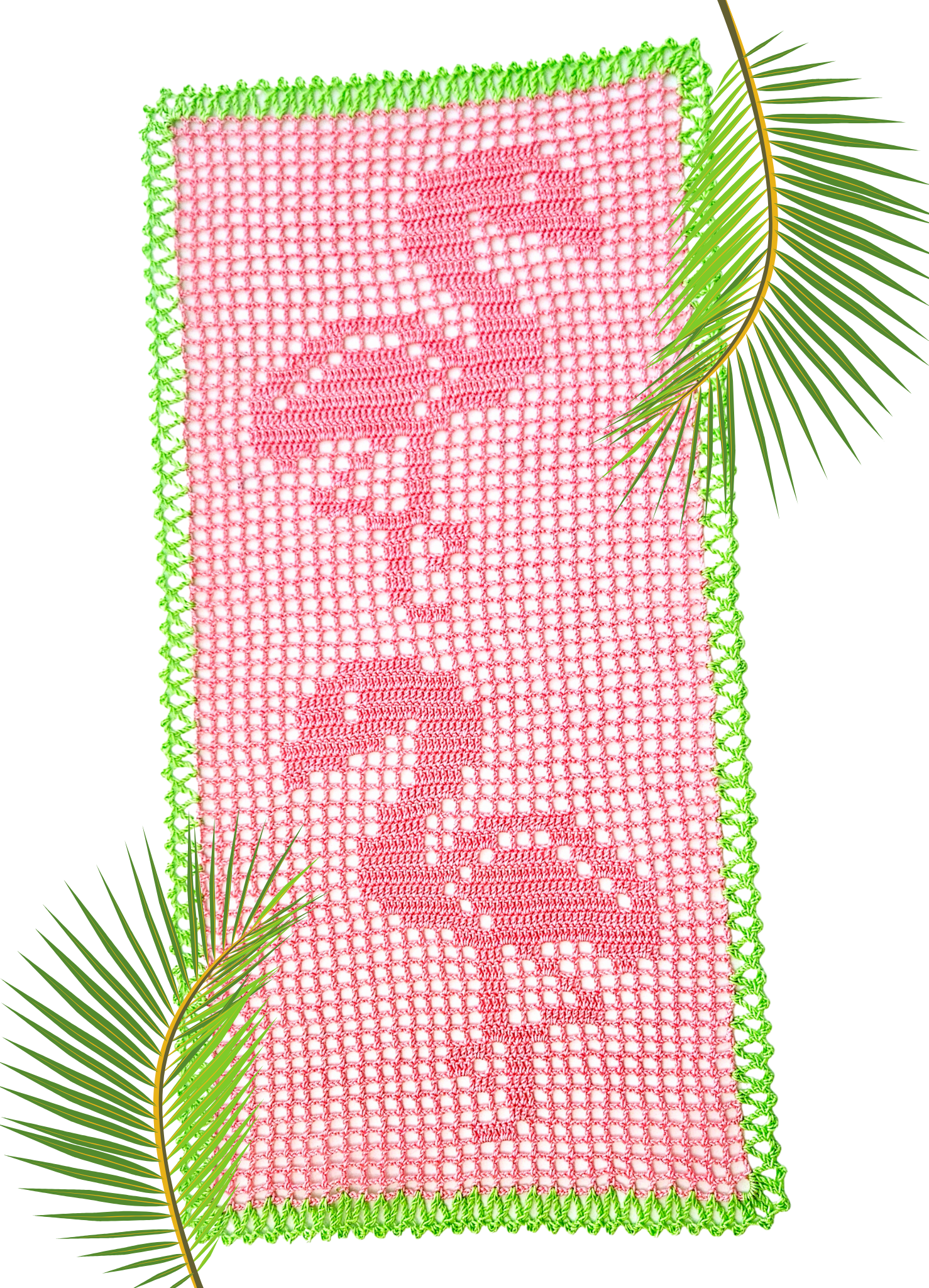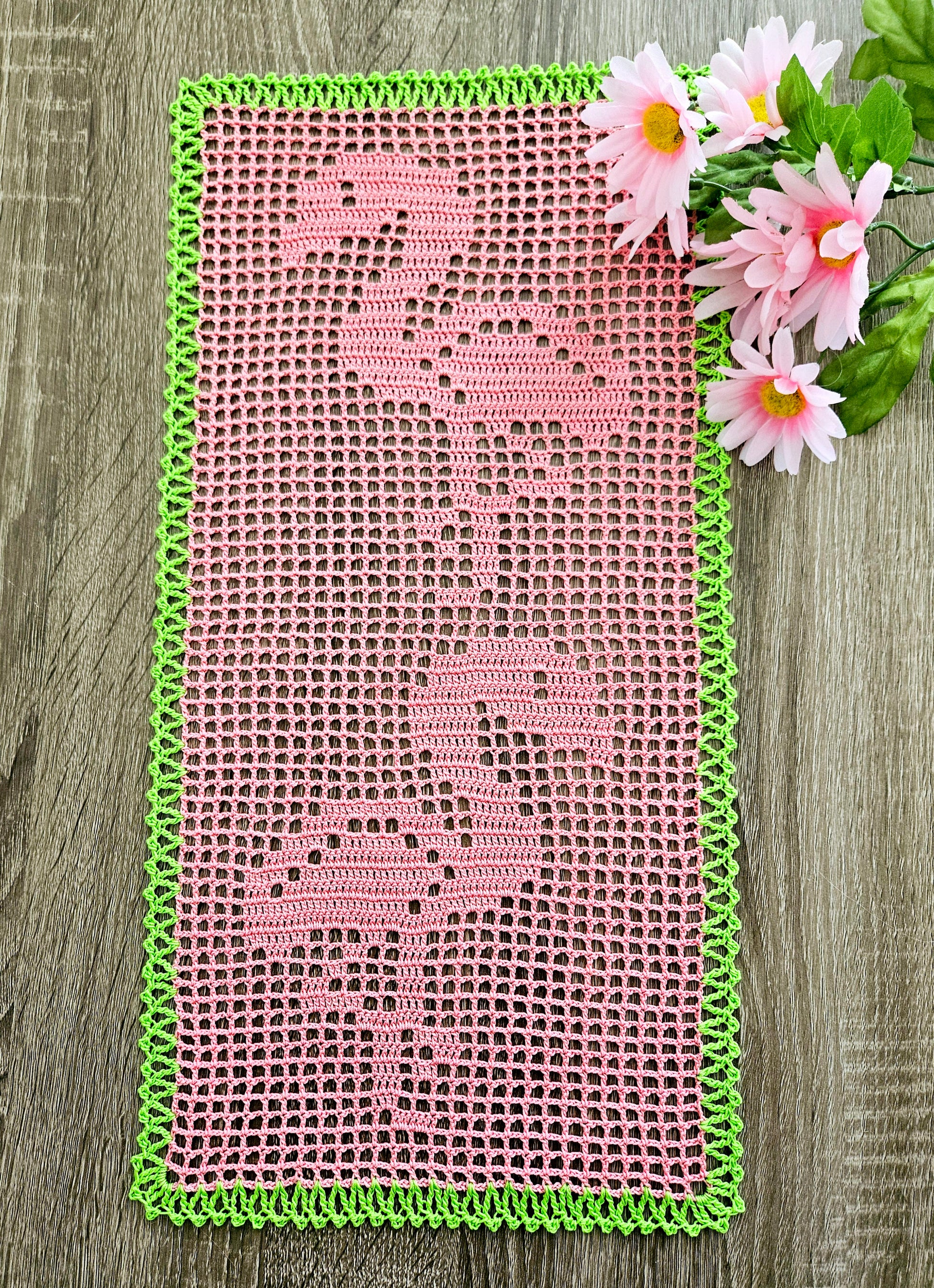 If you would like to add some tropical vibes to your summer table, then this Flamingo Table Runner filet crochet pattern will help you do that. And to add the finishing touch, you can crochet just one round of border with contrast color thread.