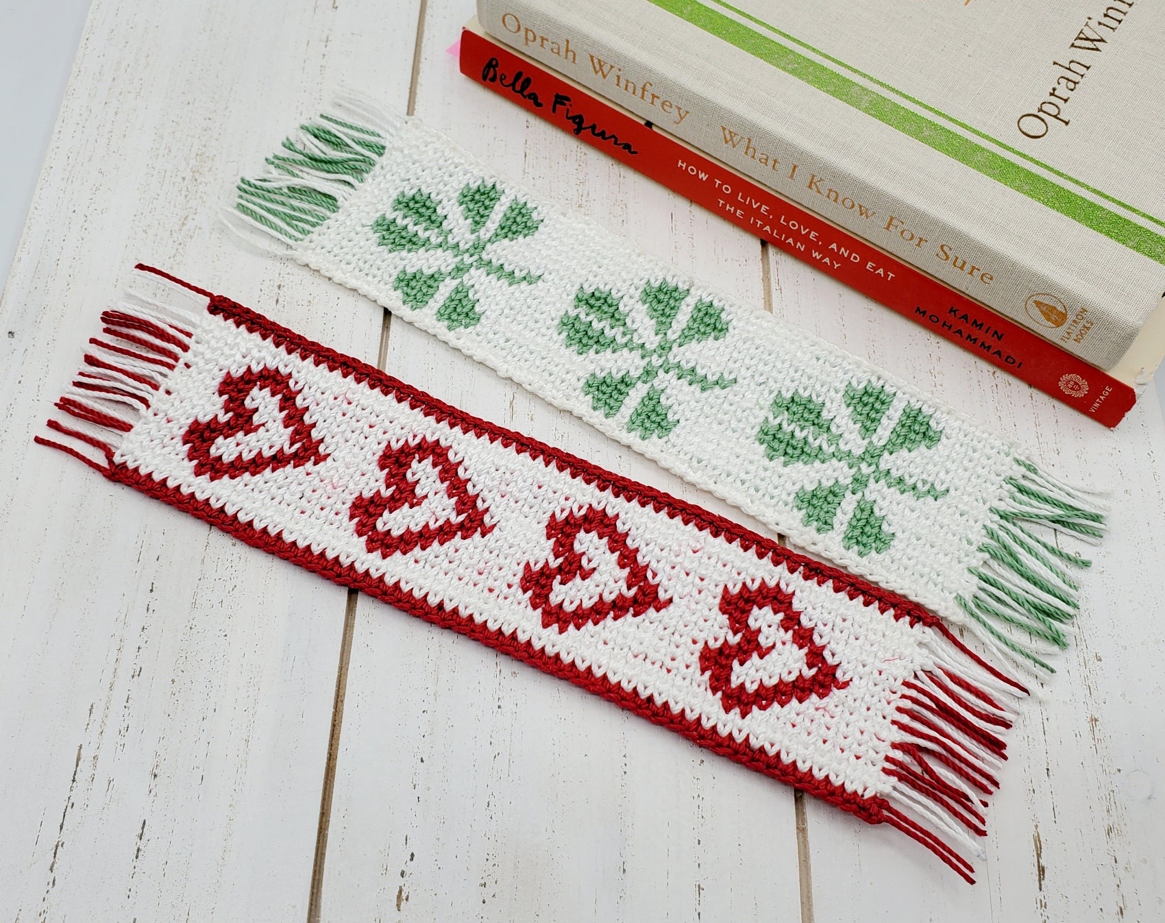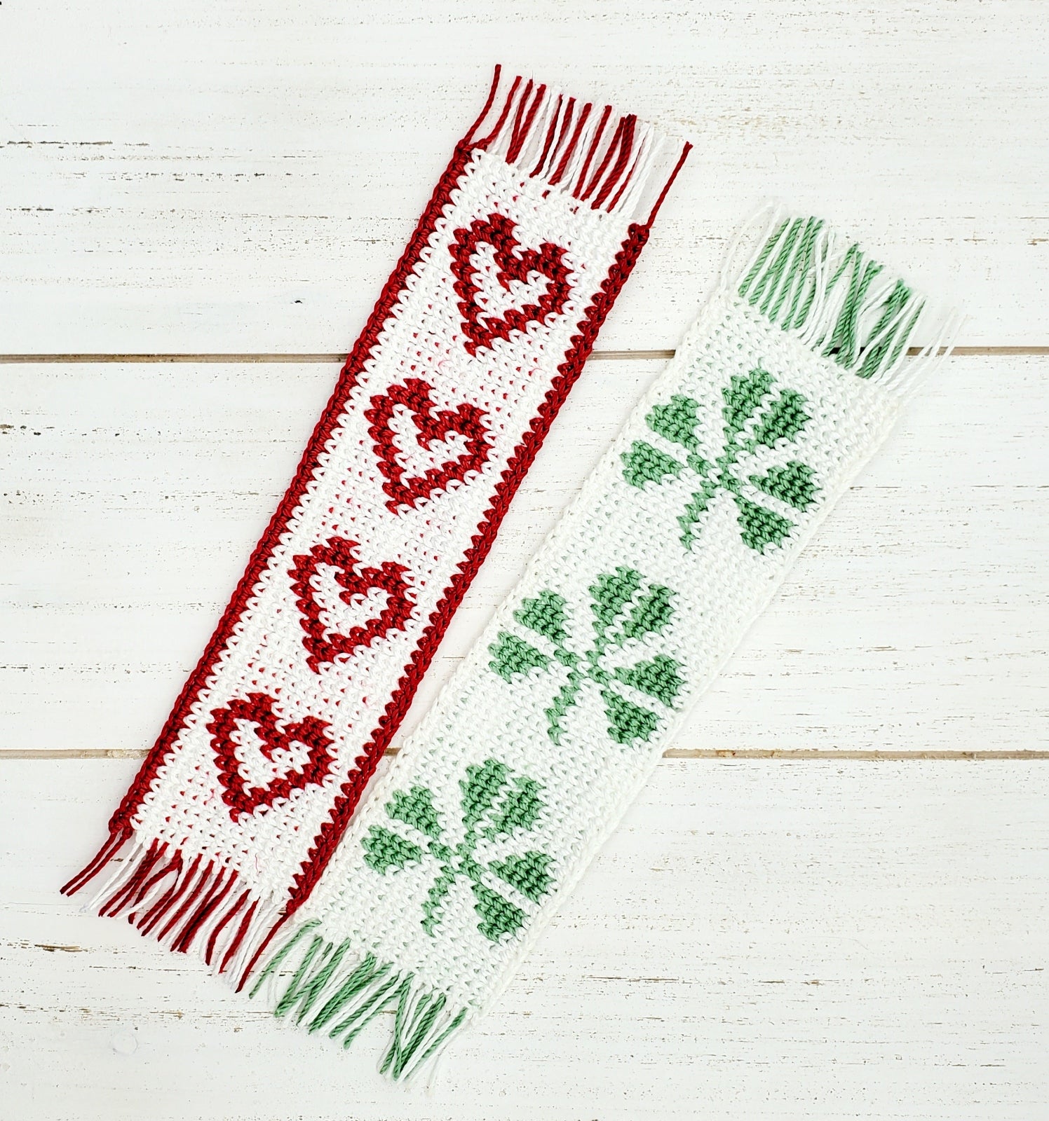 Crochet bookmarks are quick to work up and they make excellent gifts to anyone who loves books and reading. And with this Heart & Leaf Bookmark pattern you will learn tapestry crochet technique which is quite easy to master. Plus it’s so fun to crochet an image using two colors of thread.
