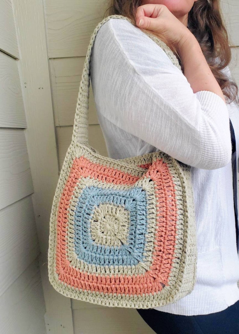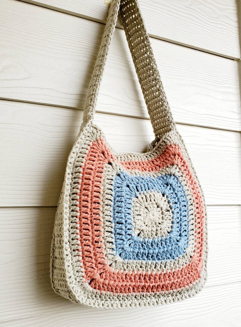 And you will be glad to know that this one is easy to make. Just need to crochet two granny squares and one long piece for the strap and side panel, then attach them and you’re done!