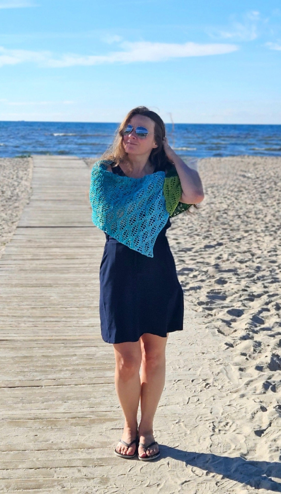 This is an easy crochet pattern, and if you haven’t tried it before, you will learn Wave stitch while making your Seabreeze Shawl.