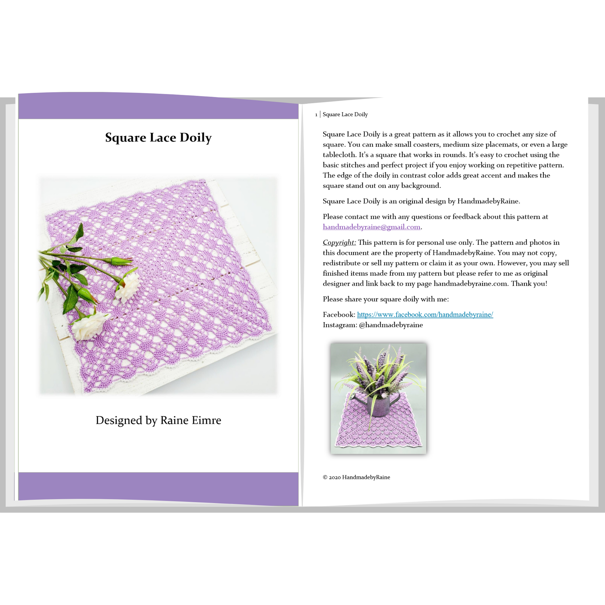 Square Lace Doily PDF Crochet Pattern