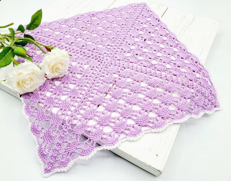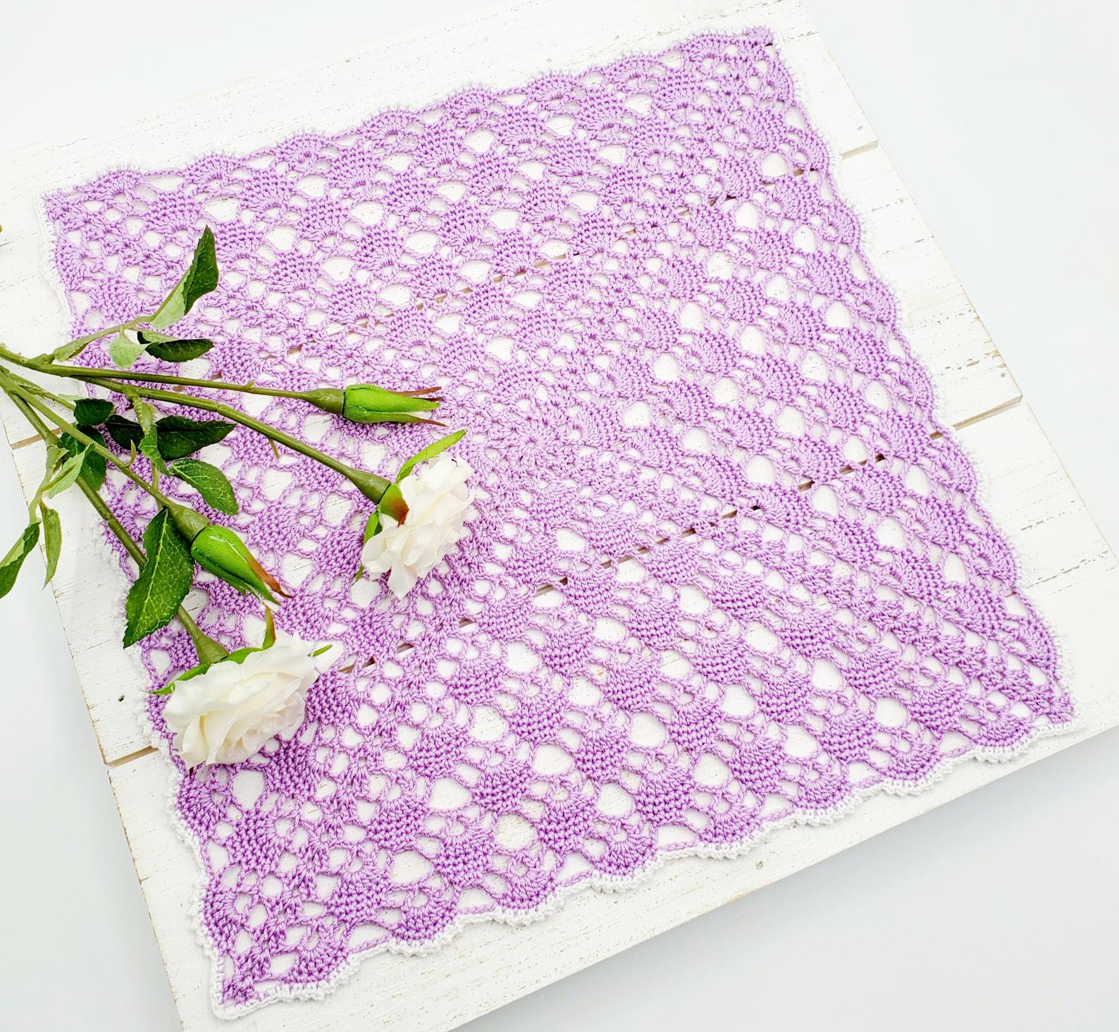 The square lace doily is a great pattern because it allows you to crochet any size of square. You can make small coasters, or medium size placemats, or even a large tablecloth. It’s easy to crochet and perfect if you enjoy working on repetitive pattern.