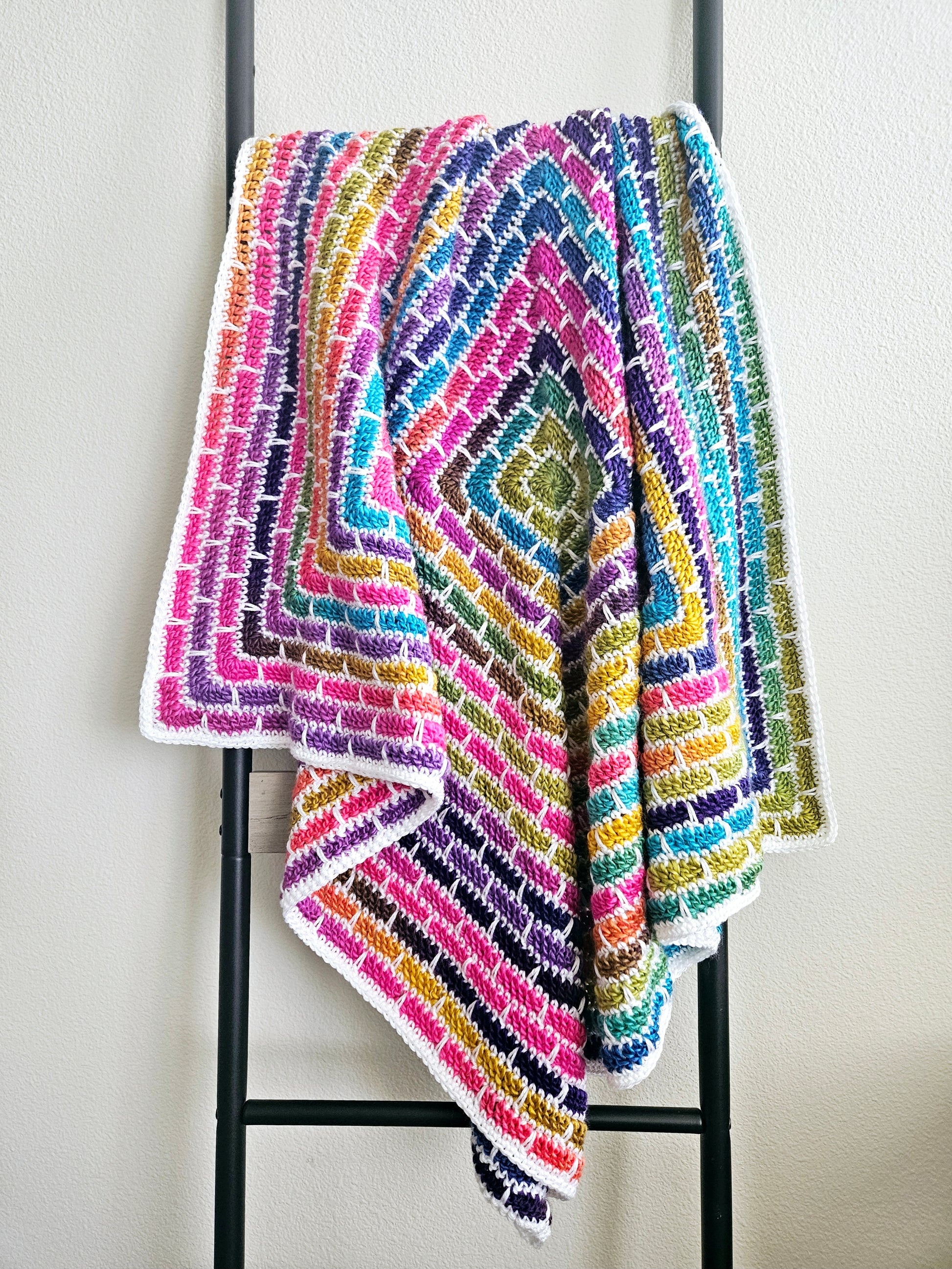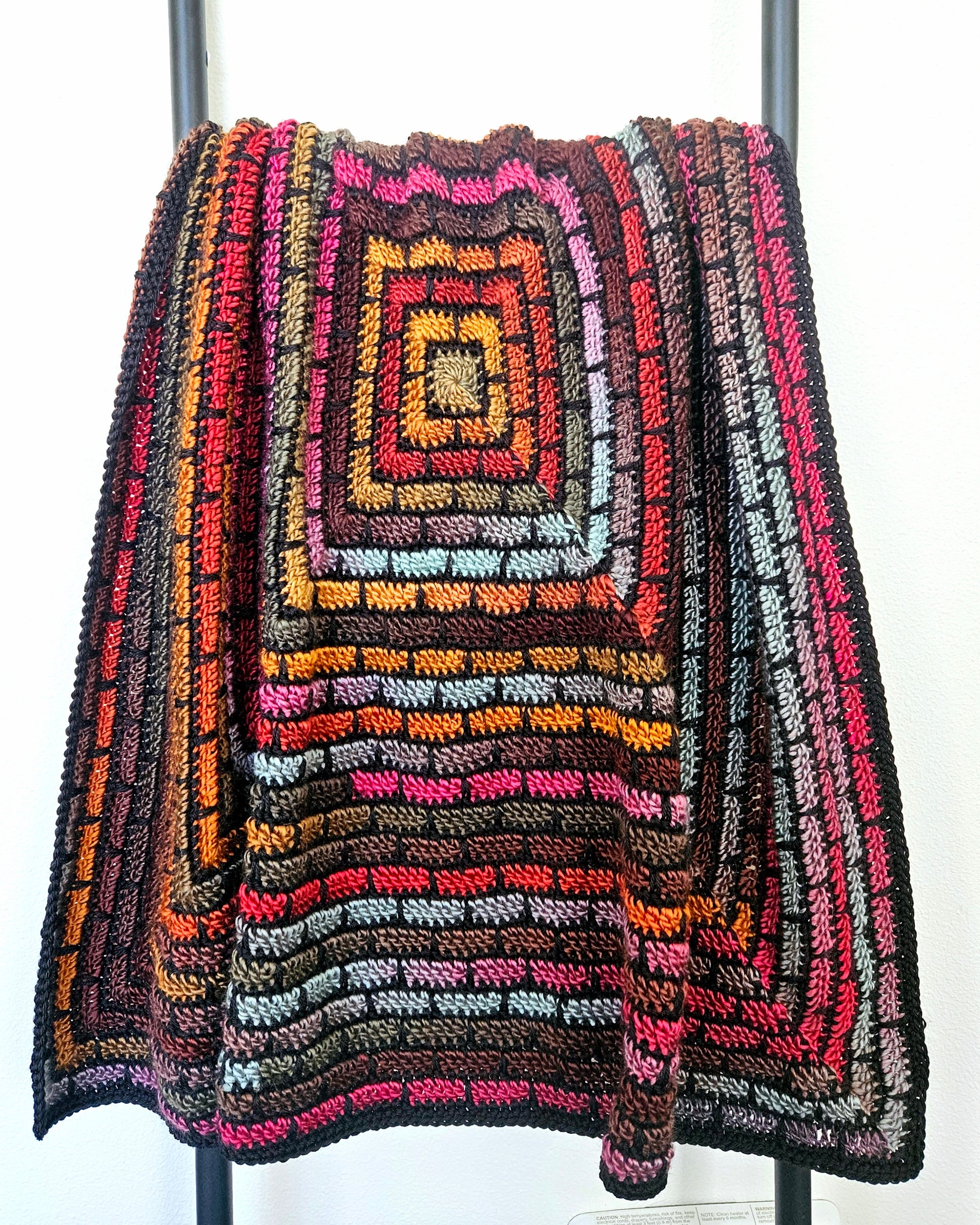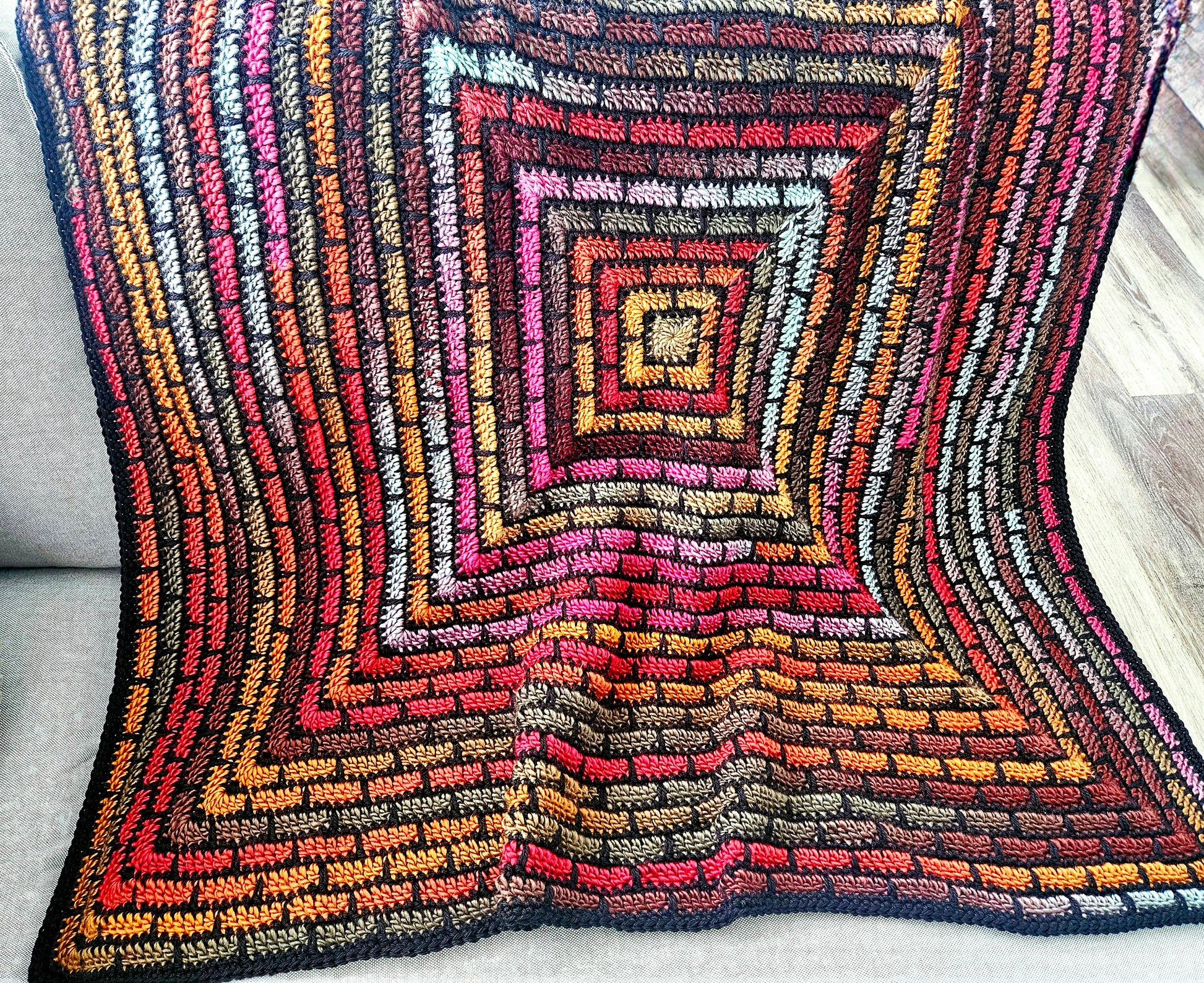 The Stained Glass Throw is an easy crochet pattern to make the stunning colorful square shaped blanket. It starts out as a square crochet motif using two yarns, and then simply adding rounds to make it your preferred size, you will end up with a much bigger square of the throw.