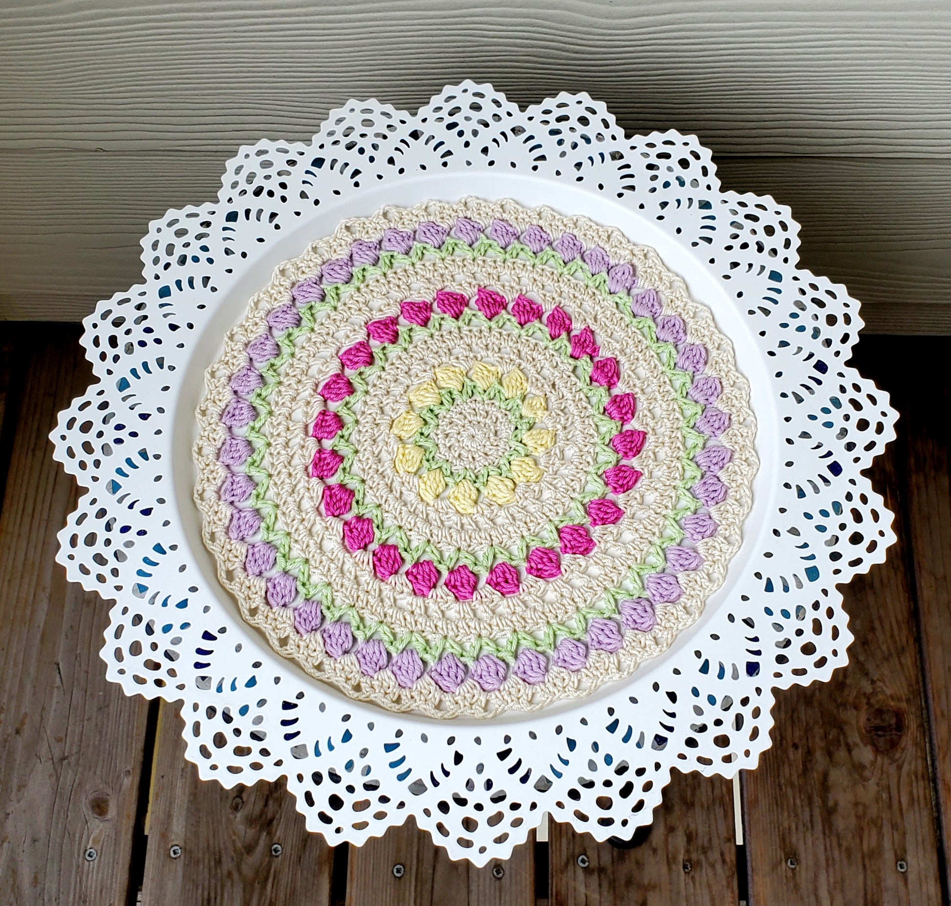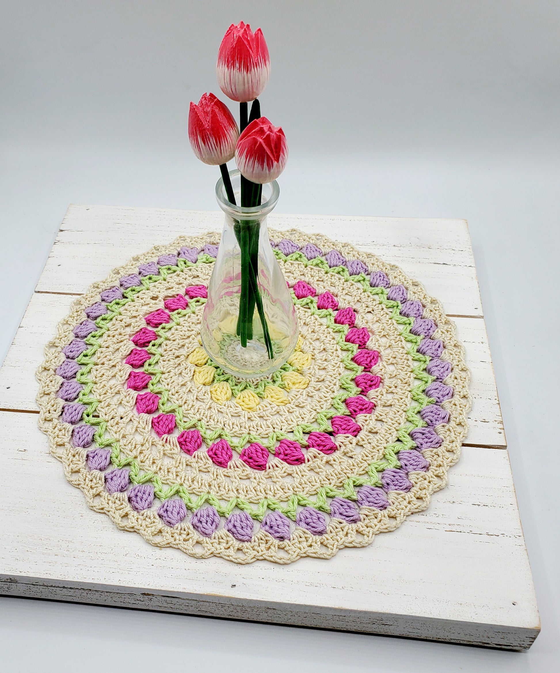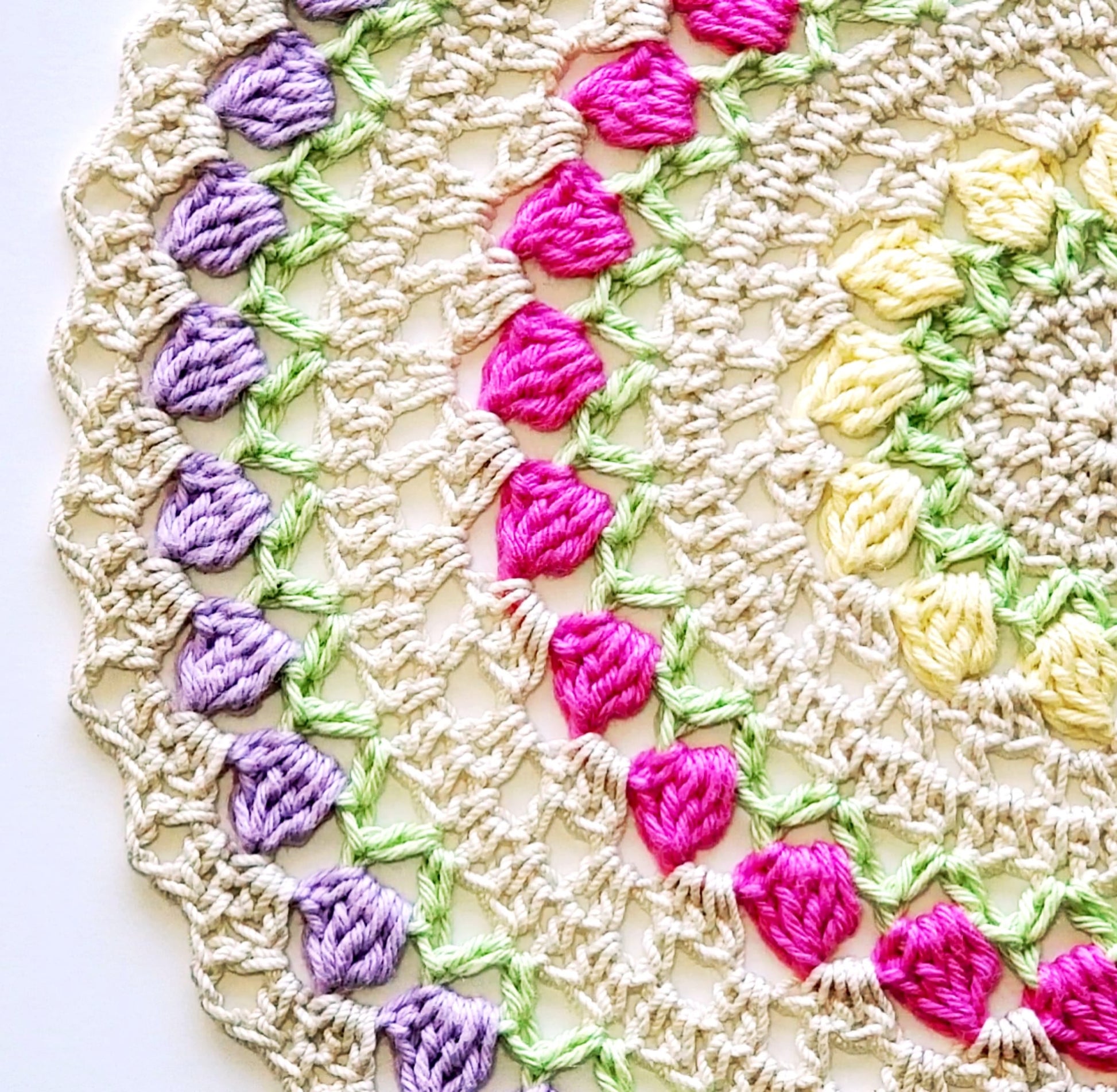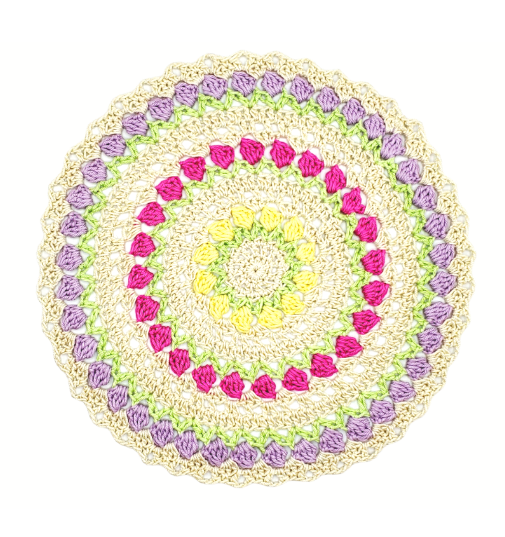 What better way to celebrate the start of spring than to crochet the colorful Tulip Mandala. It’s easy to crochet with only 17 rounds.