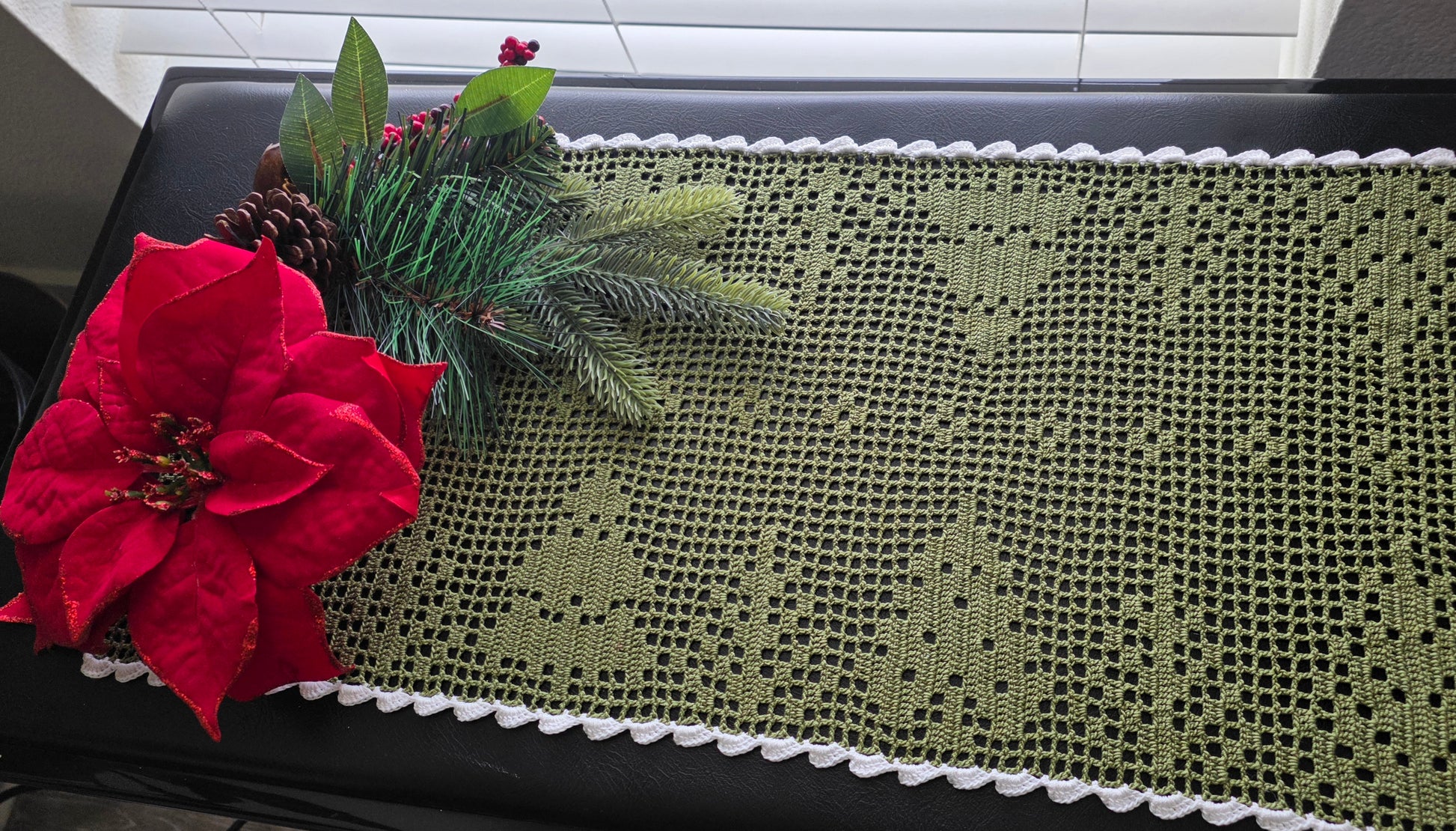 Bring a cozy, handmade touch to your holiday table with this Christmas Tree Table Runner crochet pattern, designed to become a festive favorite year after year. This elegant runner features a timeless row of Christmas trees created using the filet crochet technique.
